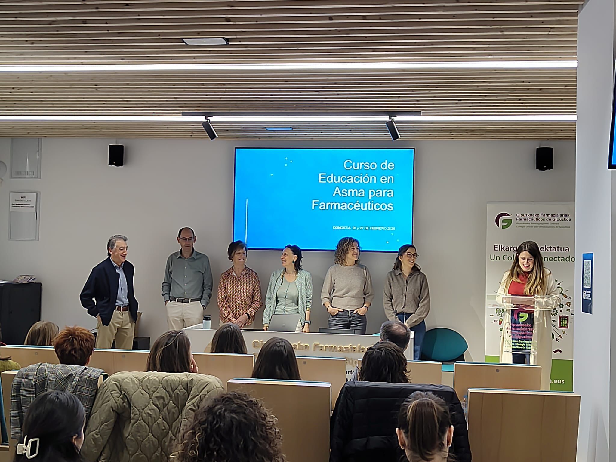 El Colegio Oficial de Farmacéuticos de Gipuzkoa (COFG), en colaboración con el grupo de trabajo «Asma y Educación» de la Sociedad Española de Neumología Pediátrica (SENP), acoge el curso «Educadores en Asma» dirigida específicamente a farmacéuticos y farmacéuticas. Medio centenar de profesionales guipuzcoanos participan en esta formación pionera, ya que se trata de la primera vez en la que la SENP imparte este programa adaptado al ámbito de la farmacia comunitaria.