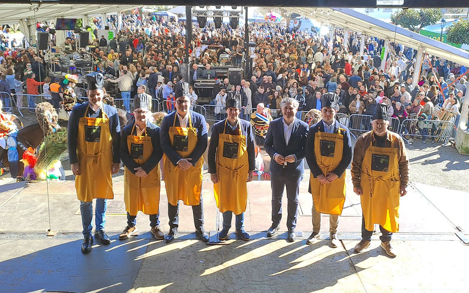 Otro de los momentos culmen de la jornada grande del evento fueron el pregón y la entrega de los Mandiles de Honor. En esta edición fueron para el pregonero, Emilio de la Iglesia, director general del Gabinete técnico de la Presidencia de la Xunta de Galicia; el presidente de la Xunta de Galicia, Alfonso Rueda; el conselleiro de Cultura, José López; el director de la Agencia en Santiago, José Antonio Riveiro, y los presidentes de las asociaciones de fiestas de San Bieito de Sergude, José Manuel Santos, y de las Carrozas de San Cidre, Alejandro Pena (ambas de Boqueixón).